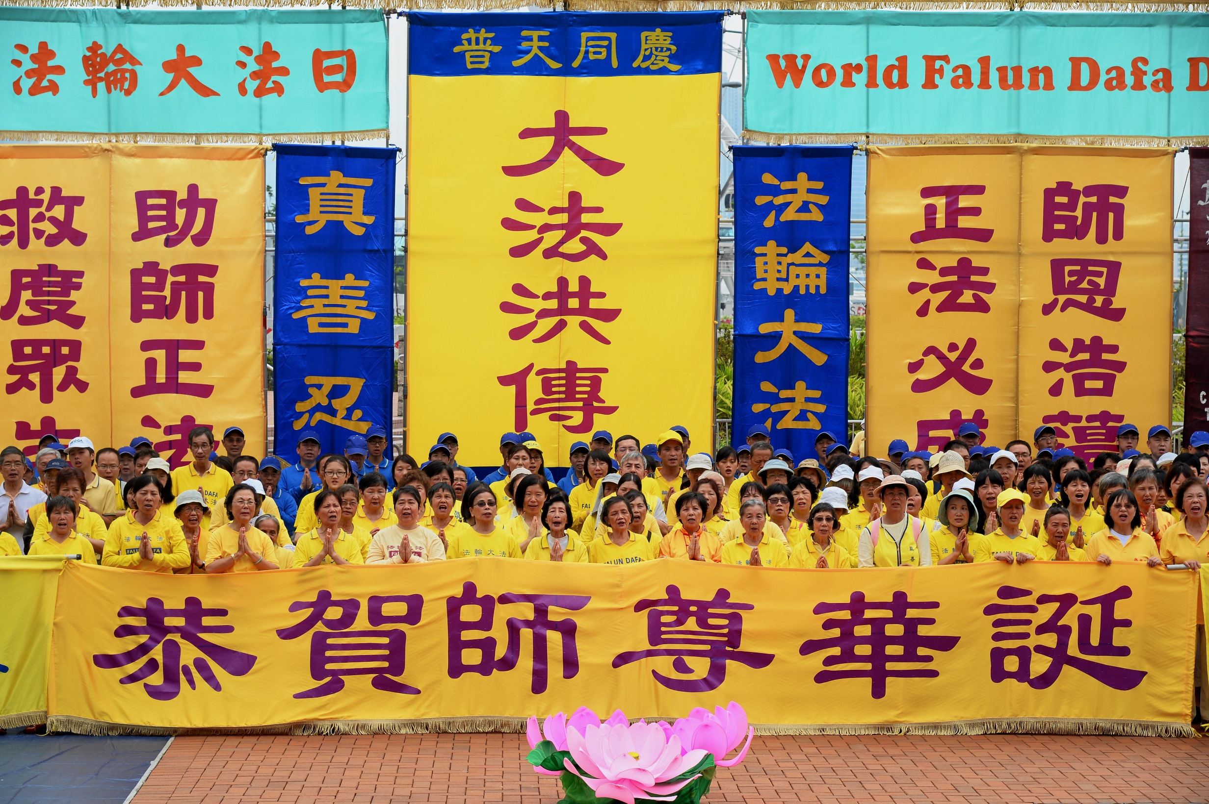 法轮功学员齐颂李洪志大师生日快乐
