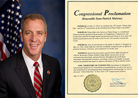 美国纽约州奥兰治郡(Orange County)多位国会议员、纽约州议员及郡长颁发褒奖,宣布五月十三日为 “法轮大法日”。