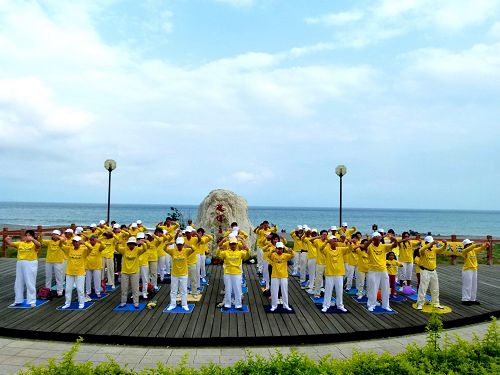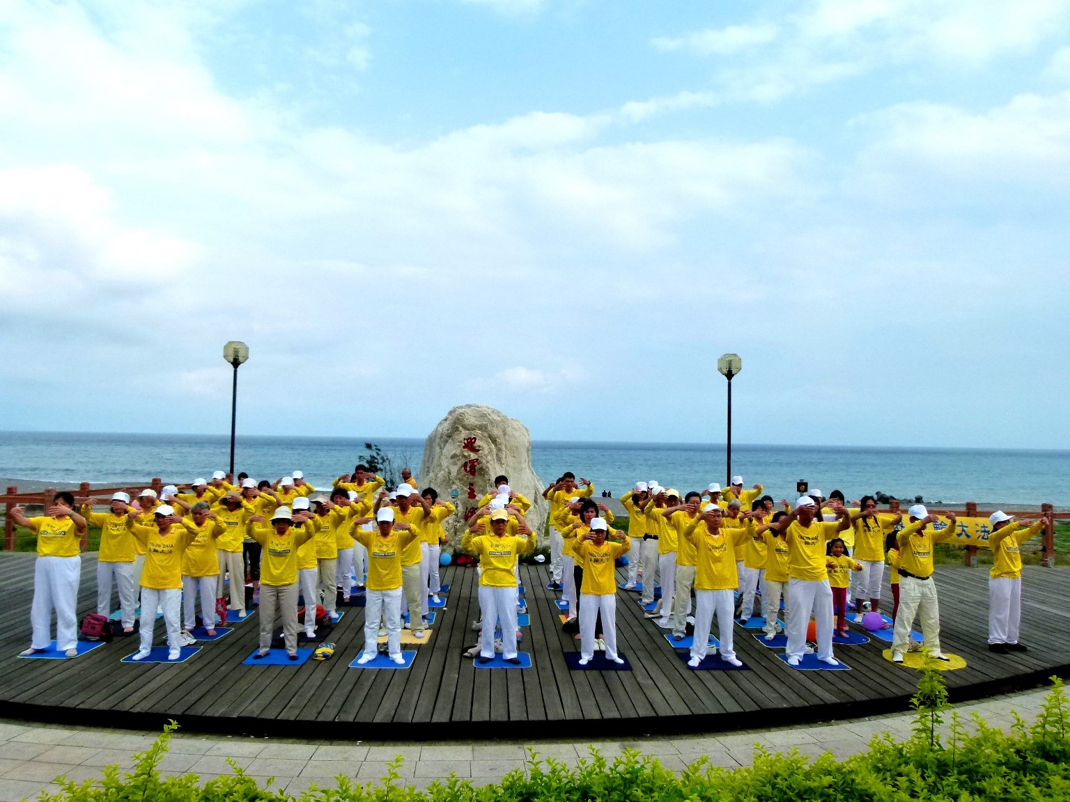 ![]() 图8-9: 台东部份法轮功学员在海滨公园集体炼功,传递大法的美好。 |