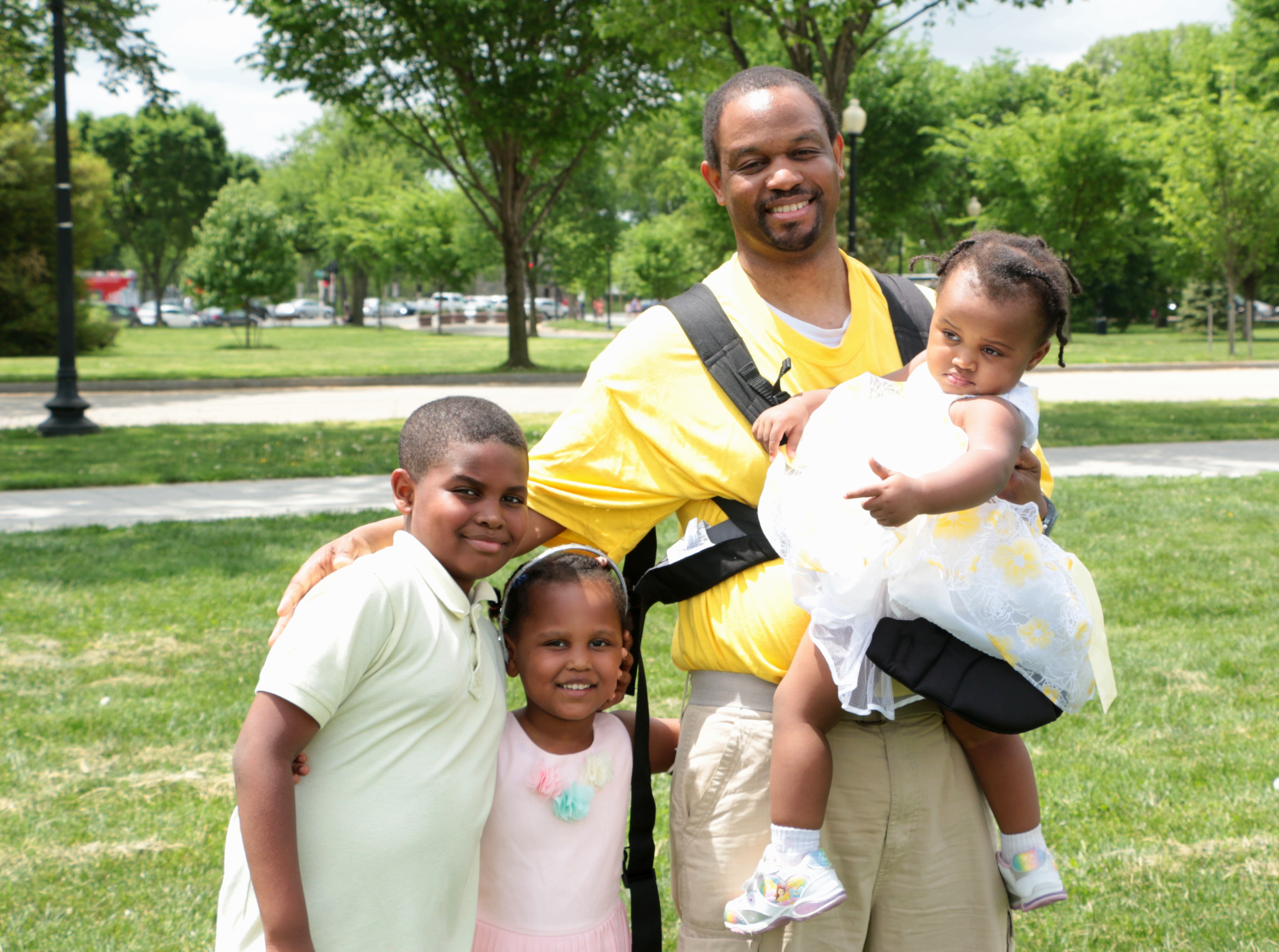 ![]() 维吉尼亚州的Jamil Lawrence是一名律师,他带着自己的三个小孩一起来参加庆典 |