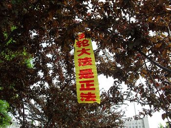 大陆各地庆祝世界法轮大法日悬挂的真相条幅
