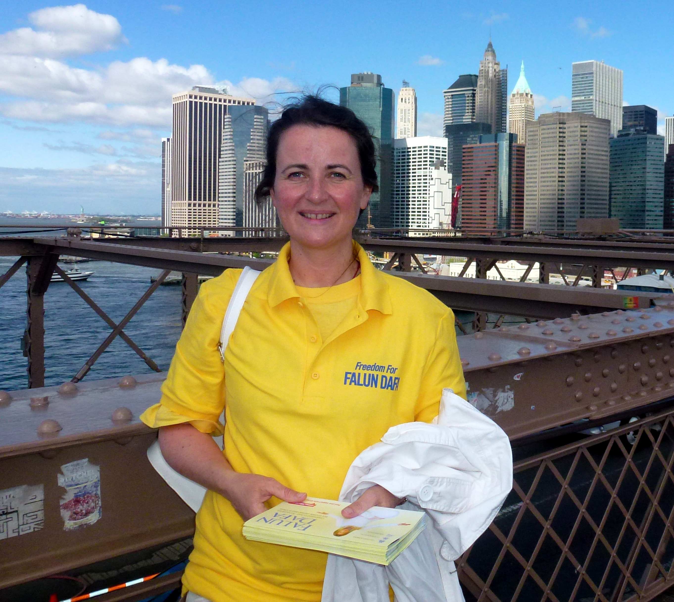 卡罗乐•古斯塔夫森(Carole Gustavsson)是居住在瑞典的法国人,她是瑞典马尔默大学(Malmö University)经济系的老师。谈到是什么使她来到纽约时说:“我的心把我带到这里!能来纽约与世界上的法轮功修炼人一起庆祝法轮大法日,我感到非常非常高兴,也感到很幸运!下个星期是我四十岁生日,我的纽约之行是我父母送给我的生日礼物。他们知道法轮大法对我的意义有多大。”