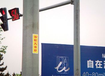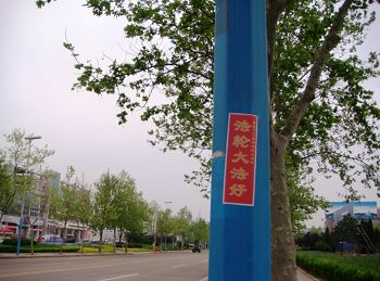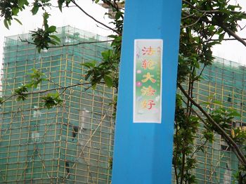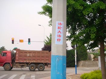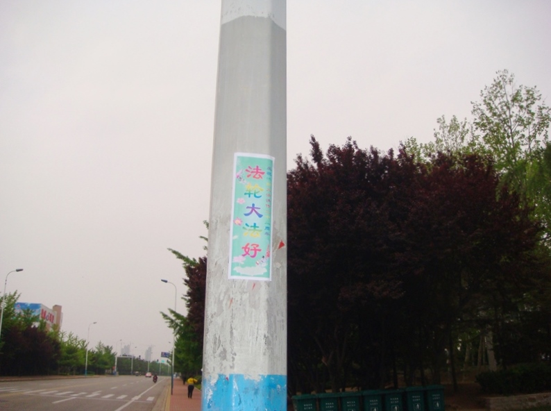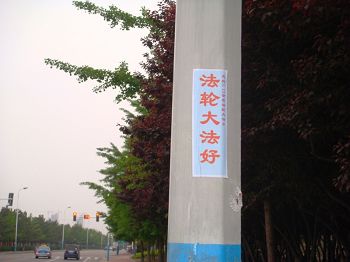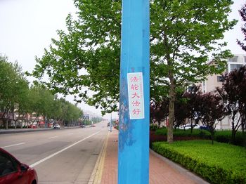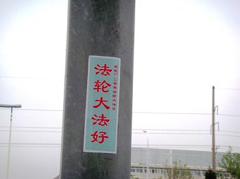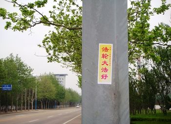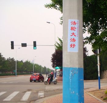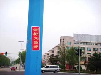山东某地街道、居民区大量标语展示“法轮大法好”