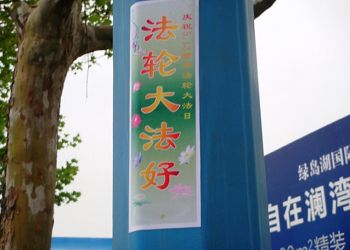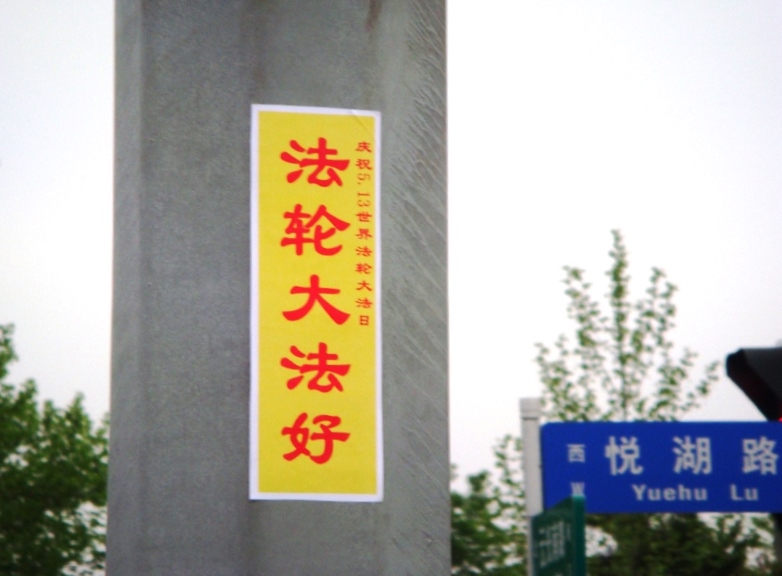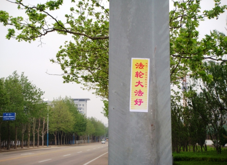庆祝大法日 黑龙江某市大街小巷可见真相标语