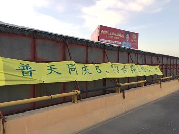 山东省莱州真相条幅庆祝5.13世界法轮大法日
