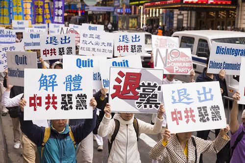 ![]() 图1-3:声援中国民众退出中共党、团、队组织是大游行的主题之一 |