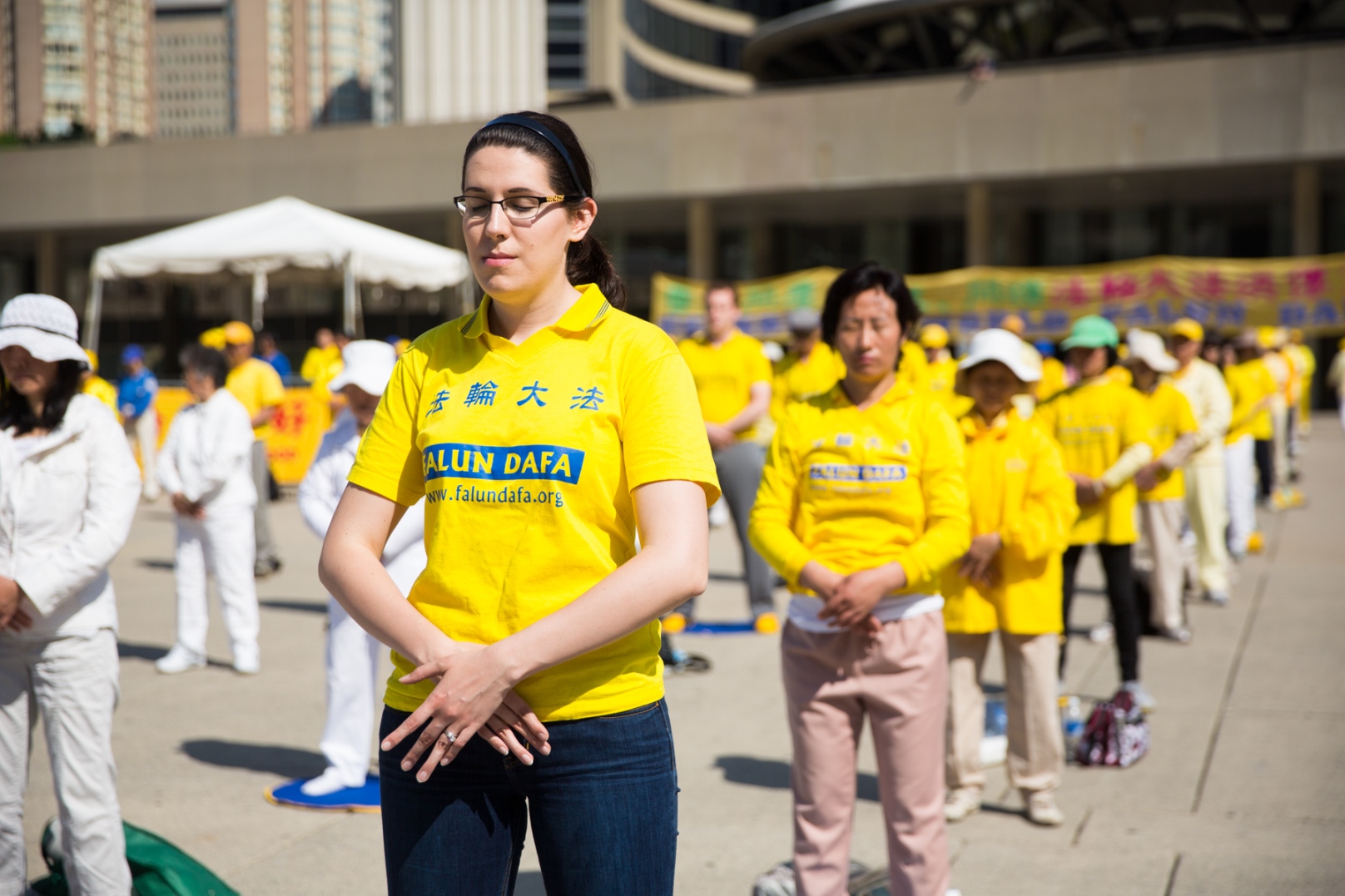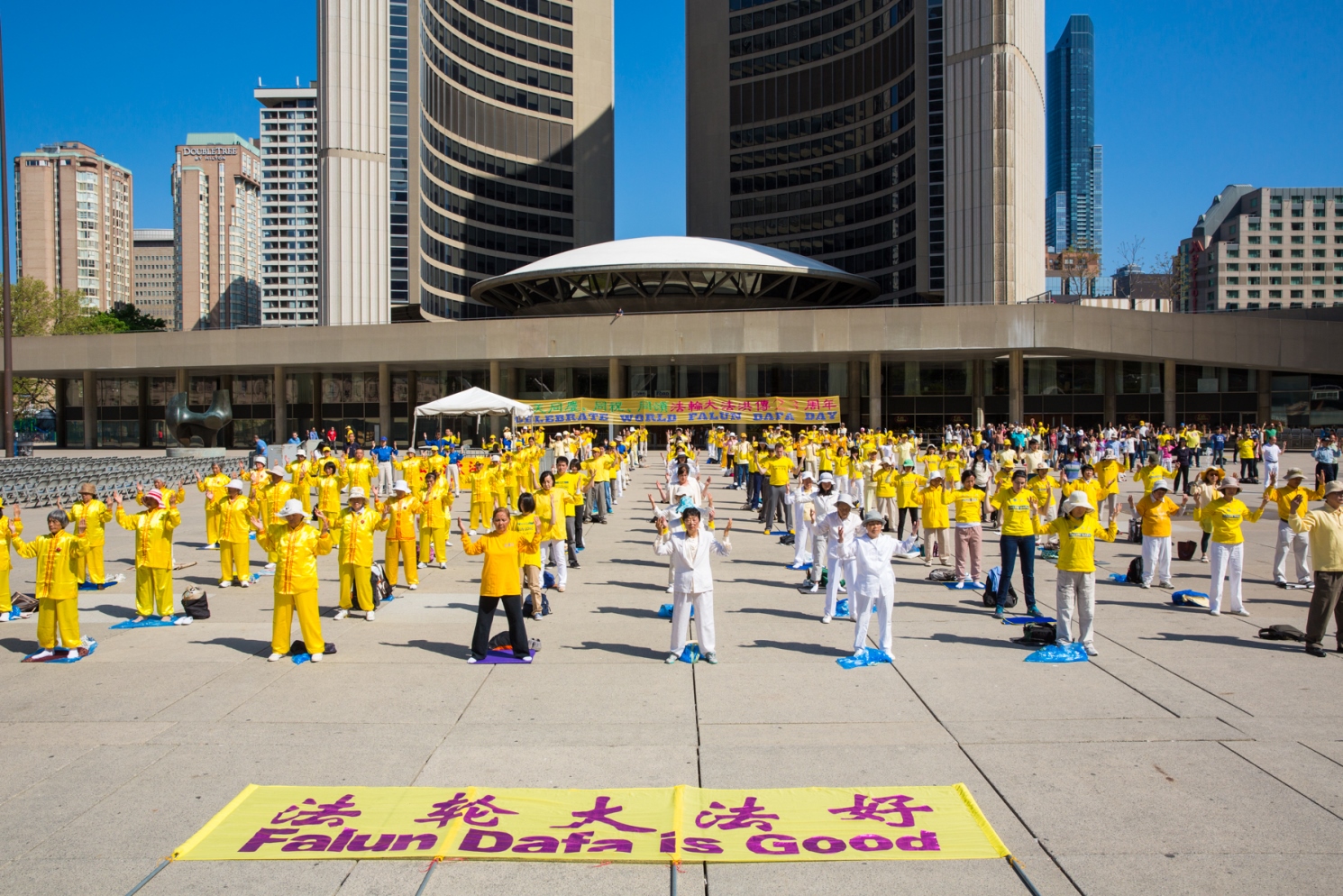 ![]() 二零一五年五月十七日,多伦多法轮功学员在市政广场庆祝法轮大法传世二十三周年。 |
