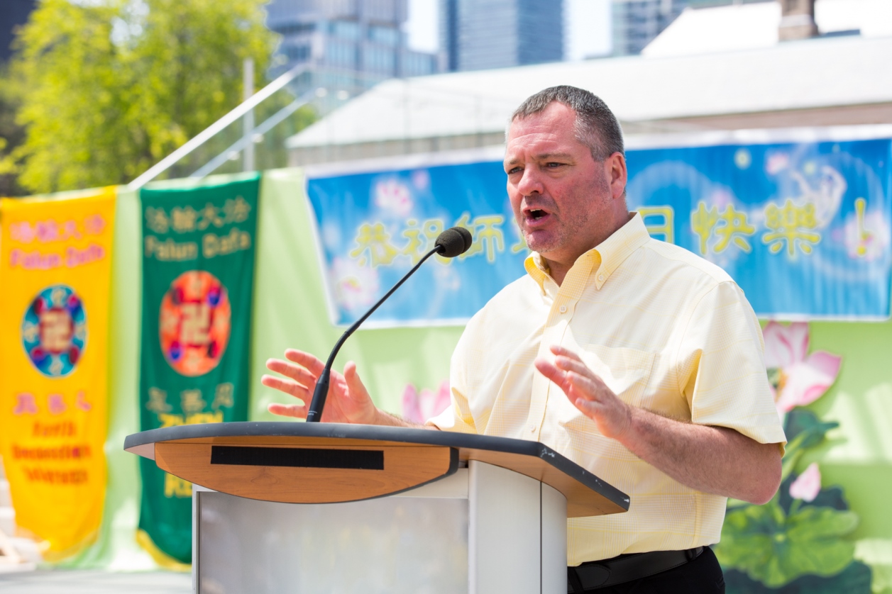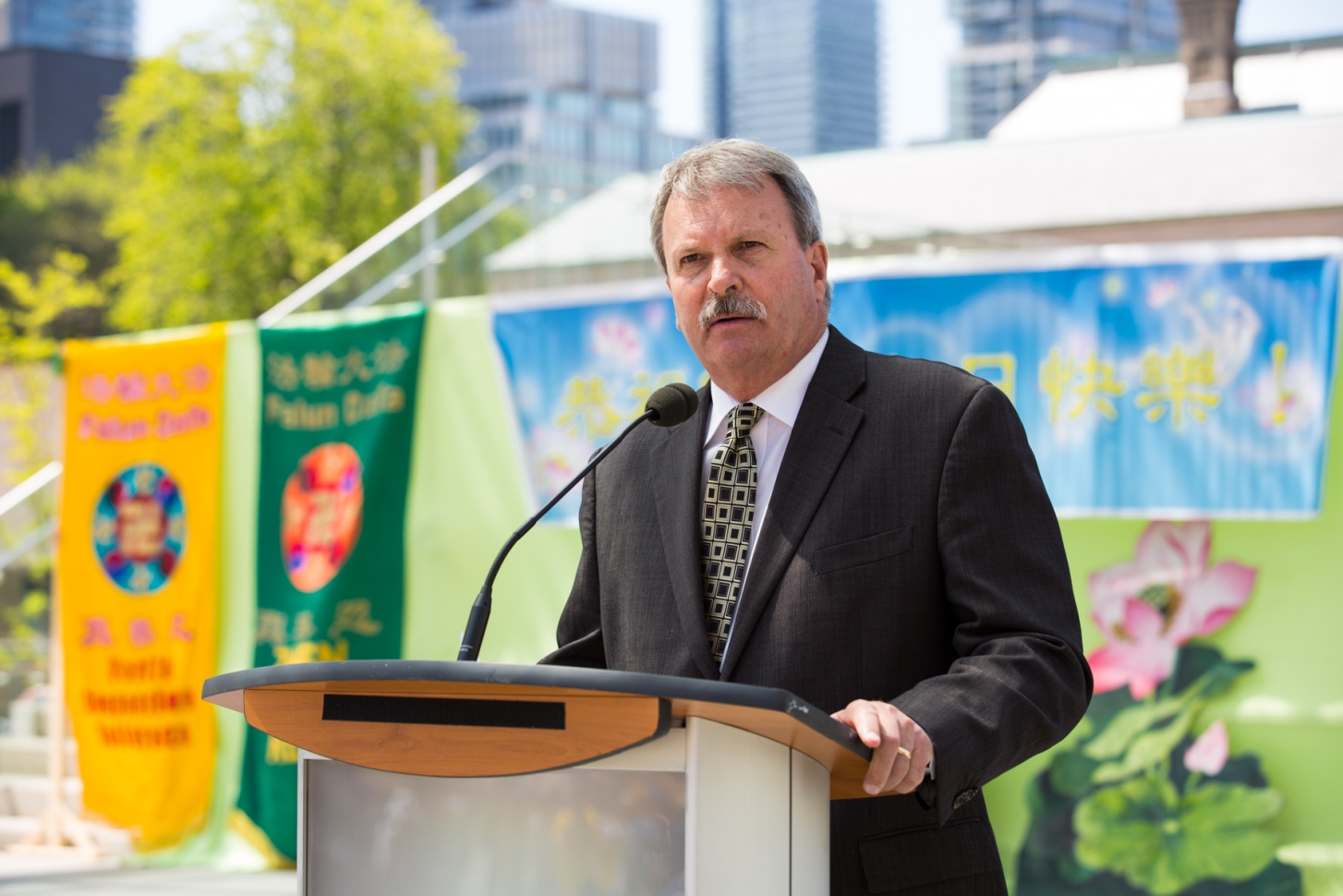 ![]() 安省议员麦克拉伦(Jack Maclaren)在发言中说:“法轮功美好的价值观,也是世界各地善良民众的价值观。” |