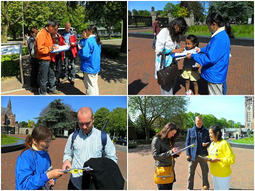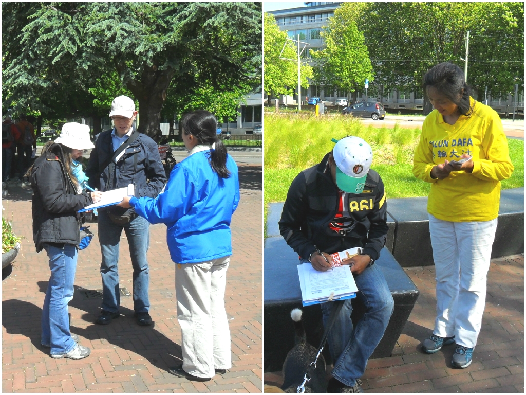 图2-4:荷兰学员在海牙国际法庭前举办讲真相征签活动