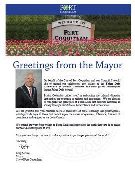 近日,加拿大不列颠哥伦比亚省高贵林港市(Port Coquitlam)市长格雷格•摩尔(Greg Moore)先生致信法轮大法协会,表达“我们对法轮大法表示最良好的祝愿,同时感谢你们为使我们的世界变得更美好所付出的努力。”