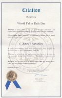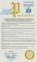 纽约州第一选区参议员Kenneth P. LaValle及其颁发的褒奖纽约州第三选区参议员Thomas D. Croci及其颁发的褒奖纽约州第四选区参议员Philip M.Boyle及其颁发的褒奖纽约州第九选区参议员Dean G. Skelos及其颁发的褒奖纽约州第十九选区参议员John L. Sampson及其颁发的褒奖纽约州第三十选区参议员Bill Perkins及其颁发的褒奖