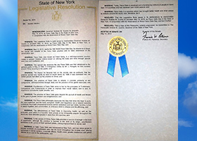 美国纽约州参议院自二零一一年起,每年都颁发决议案,褒奖“世界法轮大法日”,二零一五年再次颁发褒奖状。