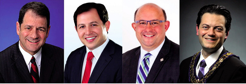 ![]() 四位加拿大市长和市议员发来贺信,感谢法轮大法修炼者与加拿大人分享他们的修炼和传统。从左至右:多伦多约克中心10选区市议员James Pasternak、安省北部城市苏圣玛丽市长Christian Provenzano、安省东部城市基奇纳市长Berry Vrbanovic、安省北部城市Barrie市长Jeff Lehman |