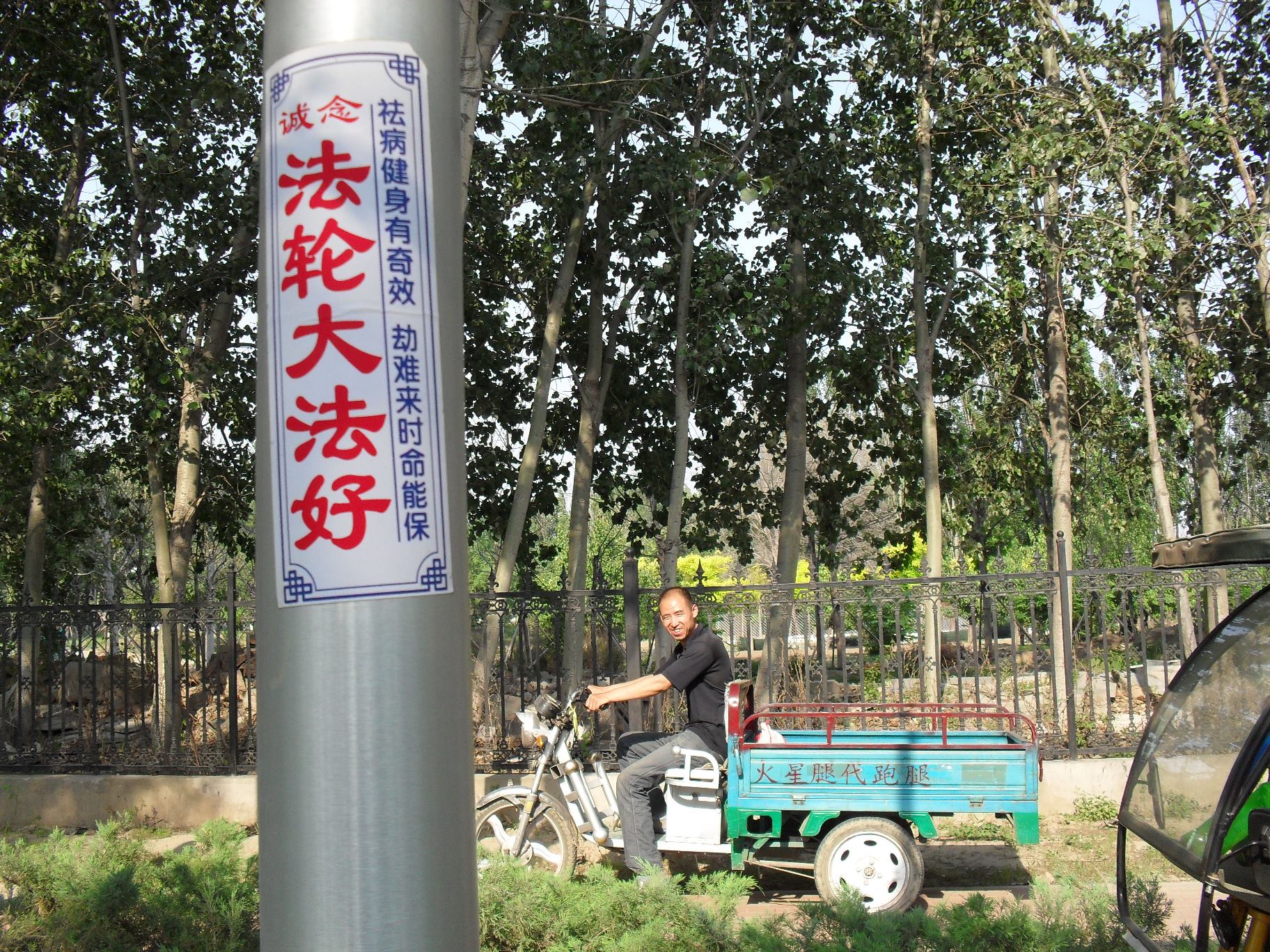塞外山城张家口到处可见到“法轮大法好“等条幅