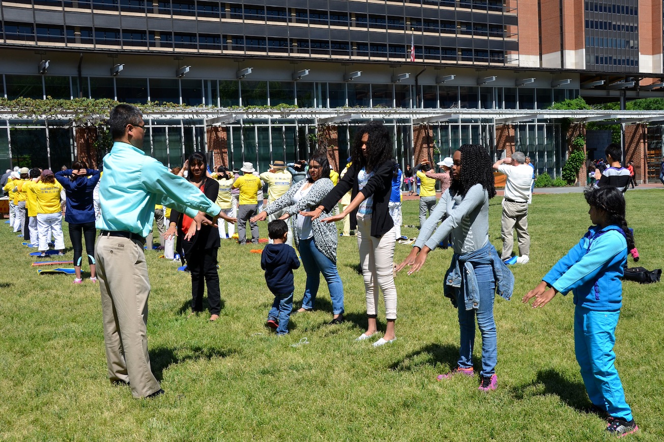 牙买加裔的肖恩(Sherry Sean)女士在费城一家医院工作,当天她和朋友们到自由钟景点观光拍照。因在牙买加时就练习瑜伽,肖恩女士表示她能感到法轮功学员炼功时有一种强大的能量流。当听到在中国发生的迫害时,她说:“这太令人伤心了,这么有益身心的功法在中国被禁止是不能接受的。人们能从这个功法中受益,应该能自由修炼,中国人应该有这种自由。”肖恩女士离开时也拿了法轮功功法介绍,表示要上网了解更多信息。