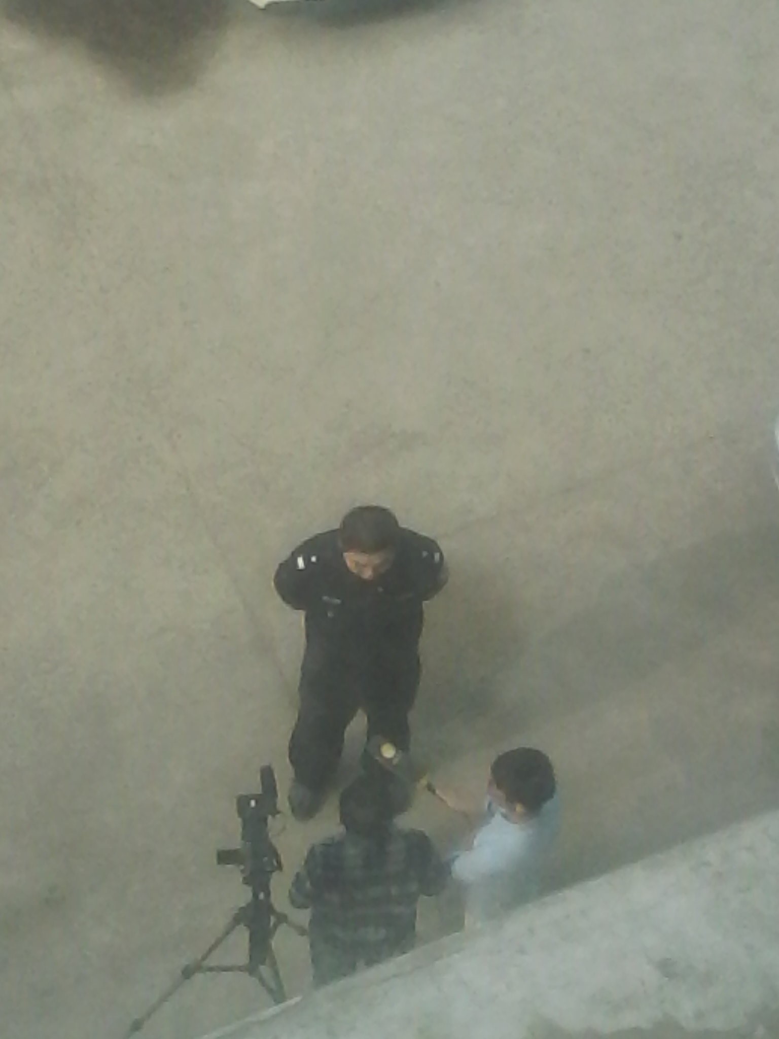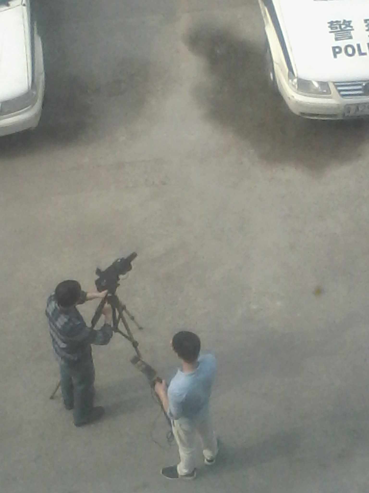近两个小时后,两个扛着摄像机和拿着话筒的电视台的人进了大院,开始把摄像机固定好做准备工作。几分钟后从大楼里出来一个有警衔的人,估计是派出所所长。电视台的人用话筒对着他进行采访,重复了好几遍才通过。估计事先写好的稿子。
