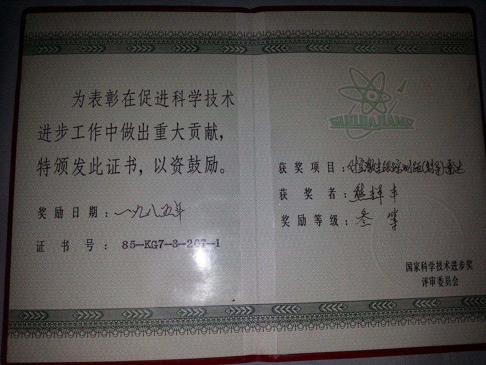 熊辉丰先生退休前曾任航天部八三五八研究所副所长、研究员、中国宇航学会的理事,是享受国家特殊津贴的专家。熊老的毕生精力全部贡献给了中国的航天事业,一生刻苦钻研,工作兢兢业业。曾因科研工作的杰出成就而获得一九八五年度《国家科学技术进步奖》三等奖,一九九三年度《光华科技基金奖》二等奖,以及若干航天部的二等功、三等功等殊荣,在航天部及研究所享有极高的声誉。