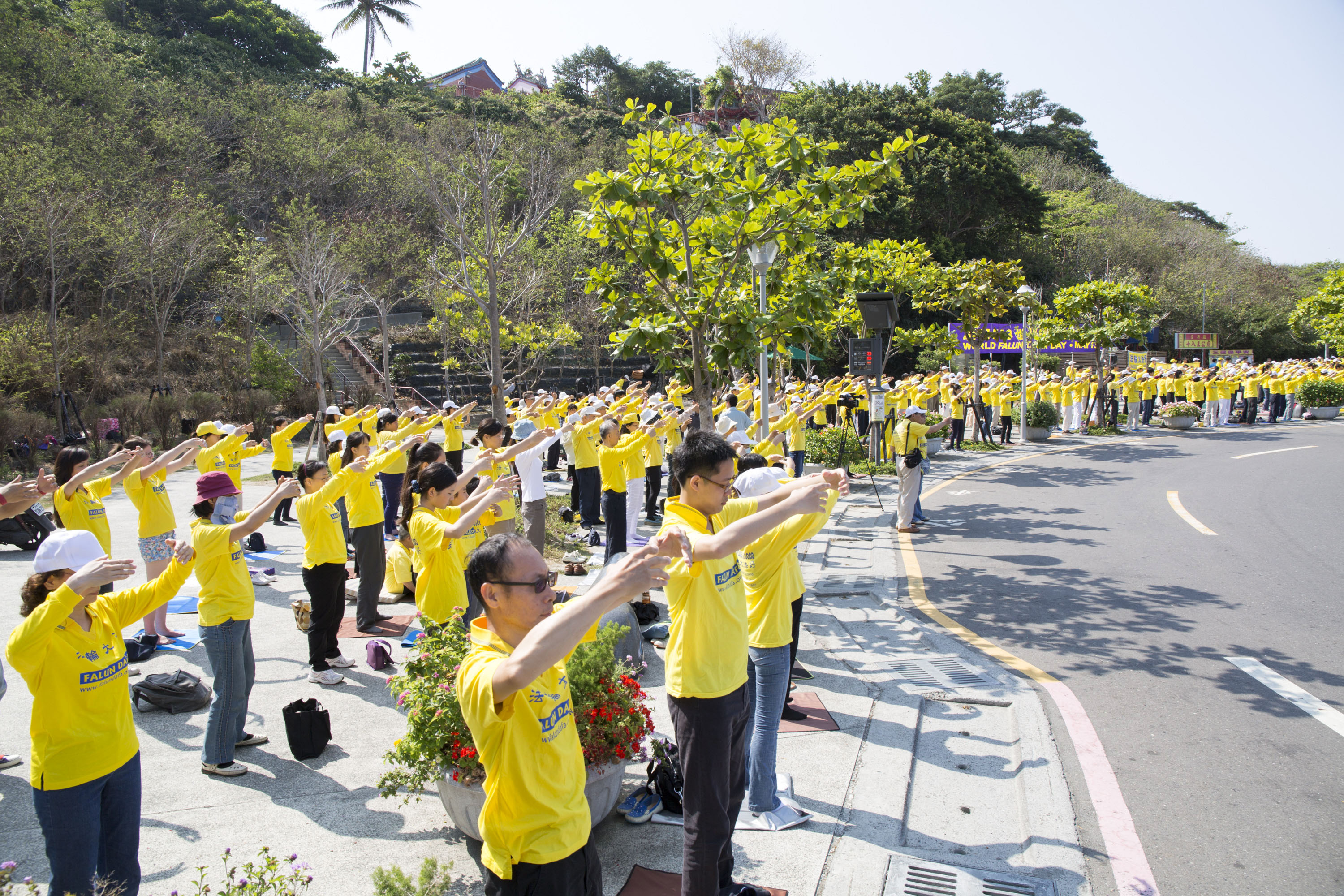 ![]() 高雄地区法轮功学员于二零一五年五月三日在著名景点西子湾庆祝“世界法轮大法日”。 |