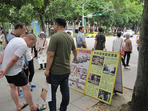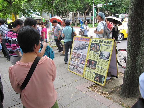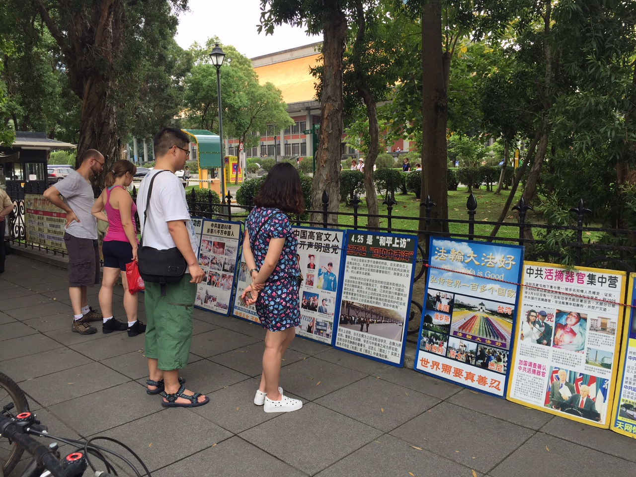 台北洪姓学员把握大陆游客等游览车短暂的时间,她向大陆民众说:三退保平安,选择美好未来,我们是中华儿女,不做马列子孙,退党自救,三退抹去毒誓。洪姓学员表示,许多大陆游客已在各大景点看过真相资料及展板,萍水相逢短暂的时间,做出明确的抉择说:“好、好,我退。”