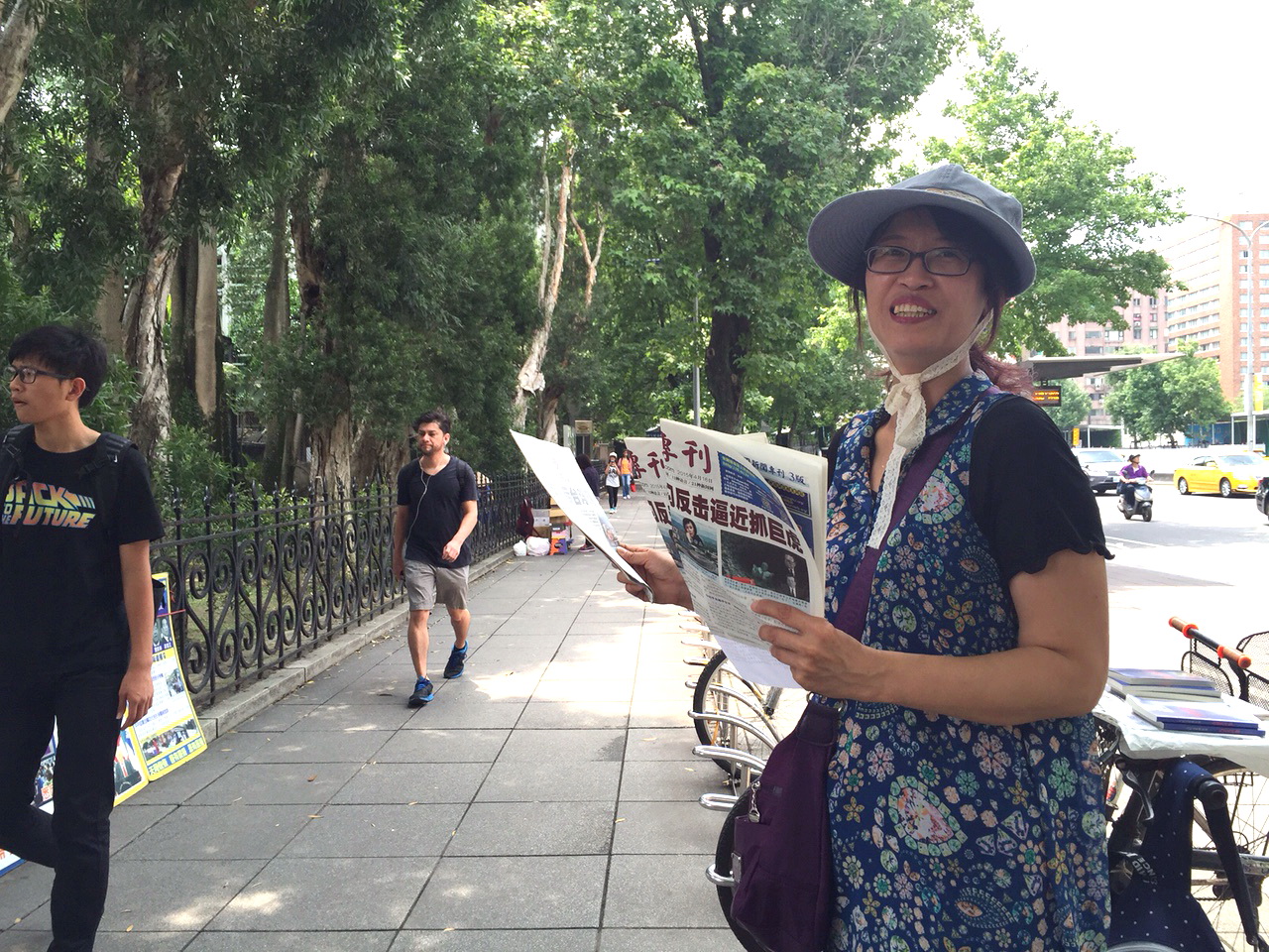 边盈慧趁着周休假期,她就会到国父纪念馆传递真相资料,路过的市民与大陆游客经常向学员比出大拇指说:“你们做得很好”,微笑的方式支持法轮功学员所做的一切努力,她表示迫害一日未终止,她就会一直坚持下去。
