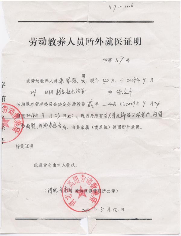 朱军强保外就医证明