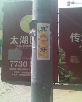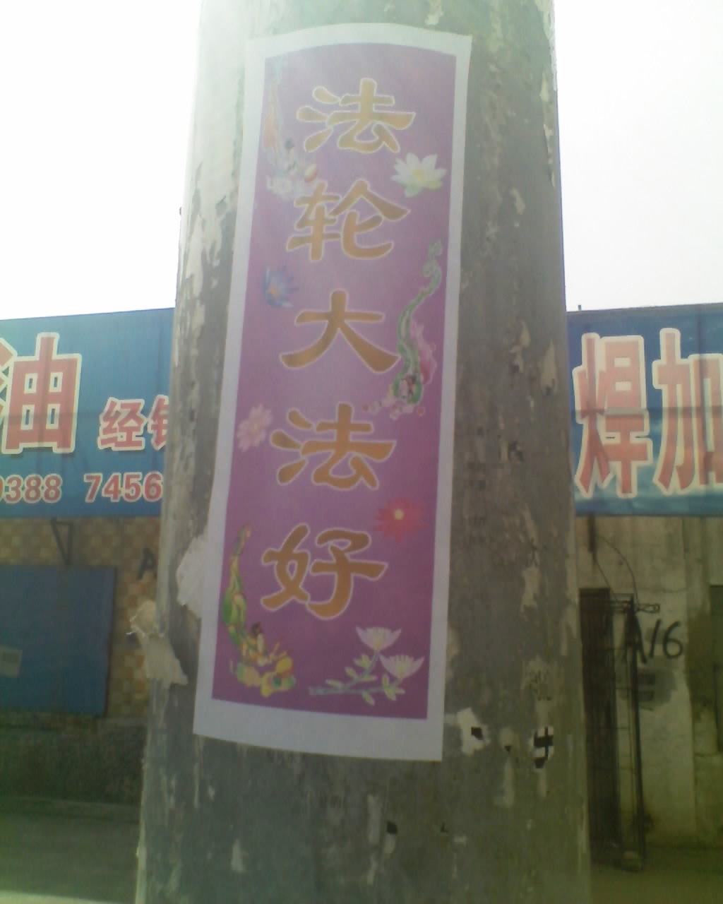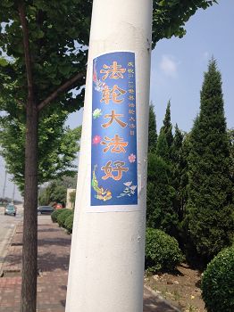 山东淄博街头可见“法轮大法好”黏贴