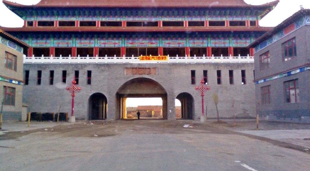 河北张家口市一居民区悬挂的大法好标语