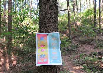 2015年5月,云南昆明某公园内多处可见“法轮大法好”、“真善忍好”、“全球公审江泽民”等真相标语,以及揭露中共活摘法轮功学员器官牟取暴利罪恶的真相海报。