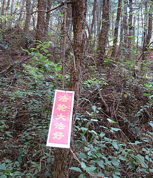 云南昆明某公园内多处可见大法好等真相标语、黏贴