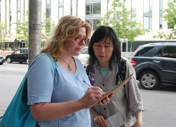 ![]() 当场有一百六十多位路人在征签表上签名,支持制止中共政府活摘法轮功学员器官 |