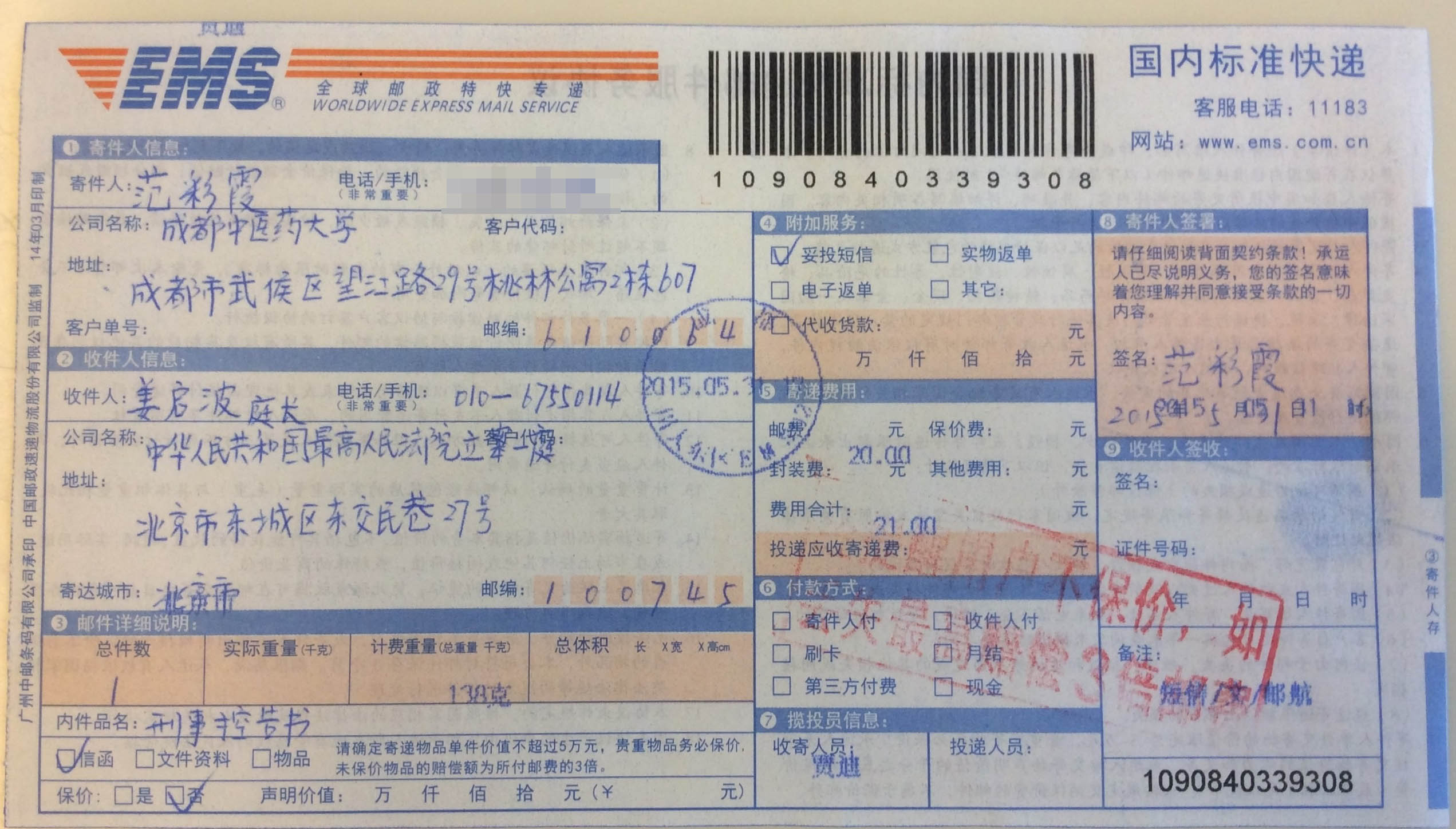 范彩霞女士表示,由于错误的刑事判决,对她和她家庭已经造成巨大精神伤害和财物损失。成都市温江区法院和成都中医药大学敢公然的违背《宪法》和法律,是因为被控告人江泽民,非法发布思想转化和其它酷刑迫害法轮功信仰者的命令,从中央高层通过指挥链发布到省、市、地方等各级中共官员;后者则将该命令转达给洗脑班、劳教所、看守所、监狱等处的公安、狱警等人员。该指挥链的核心乃是中央处理法轮功问题领导小组及其610办公室。该办公室由江泽民在中央到各地建立,其宗旨便是策划与实施对法轮功信仰者的违法暴力镇压(斗争)与酷刑折磨(转化)。