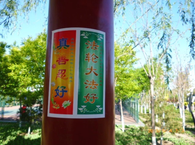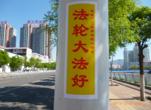 【明慧网二零一五年六月十三日】二零一五年五月中,河北省张家口地区城镇街道多处可见“法轮大法好”、“真善忍好”、“全球公审江泽民”、“三退保平安”等真相标语、黏贴。