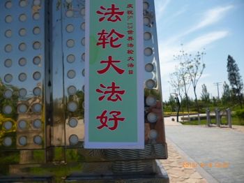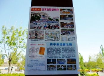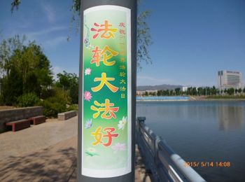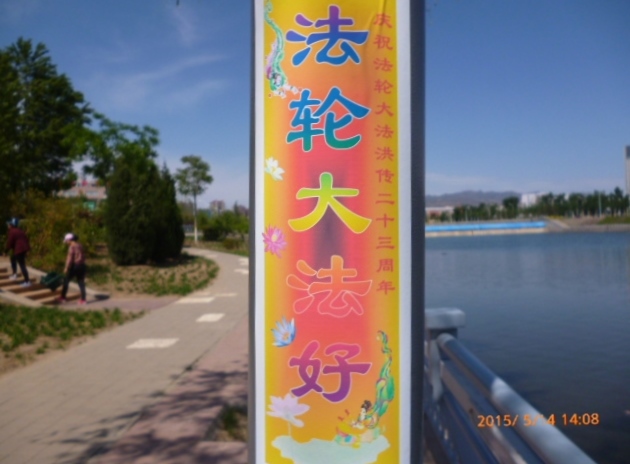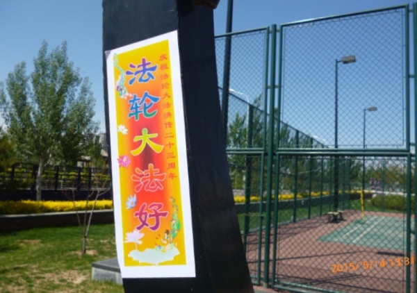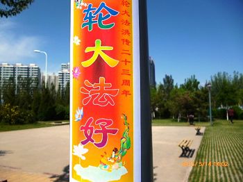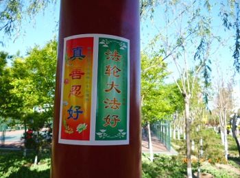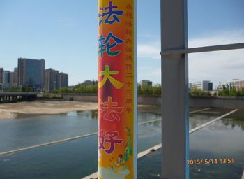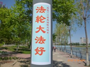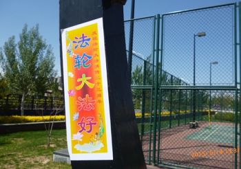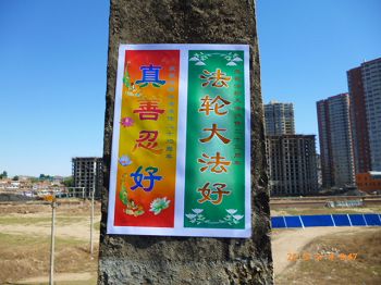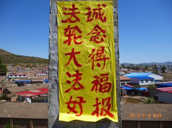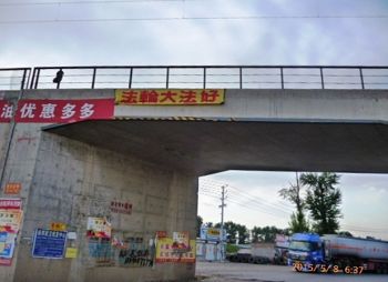 塞外山城张家口到处可见到“法轮大法好“等条幅