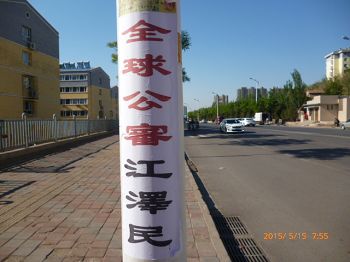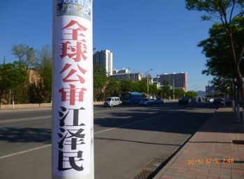 黑龙江、长春街头出现“全球公审江泽民”标语