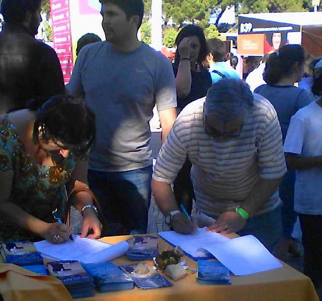 5月31日在首都里斯本书市上学员们在讲真相征签