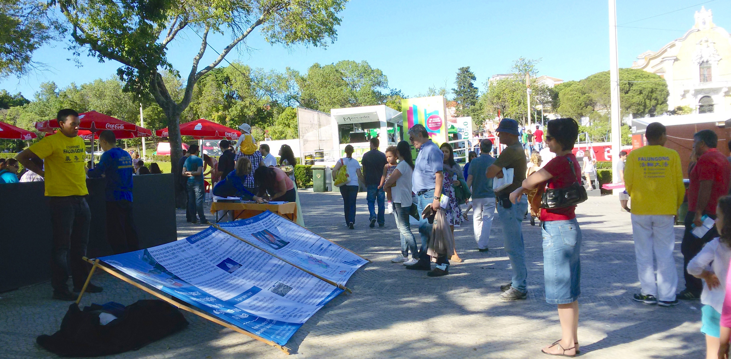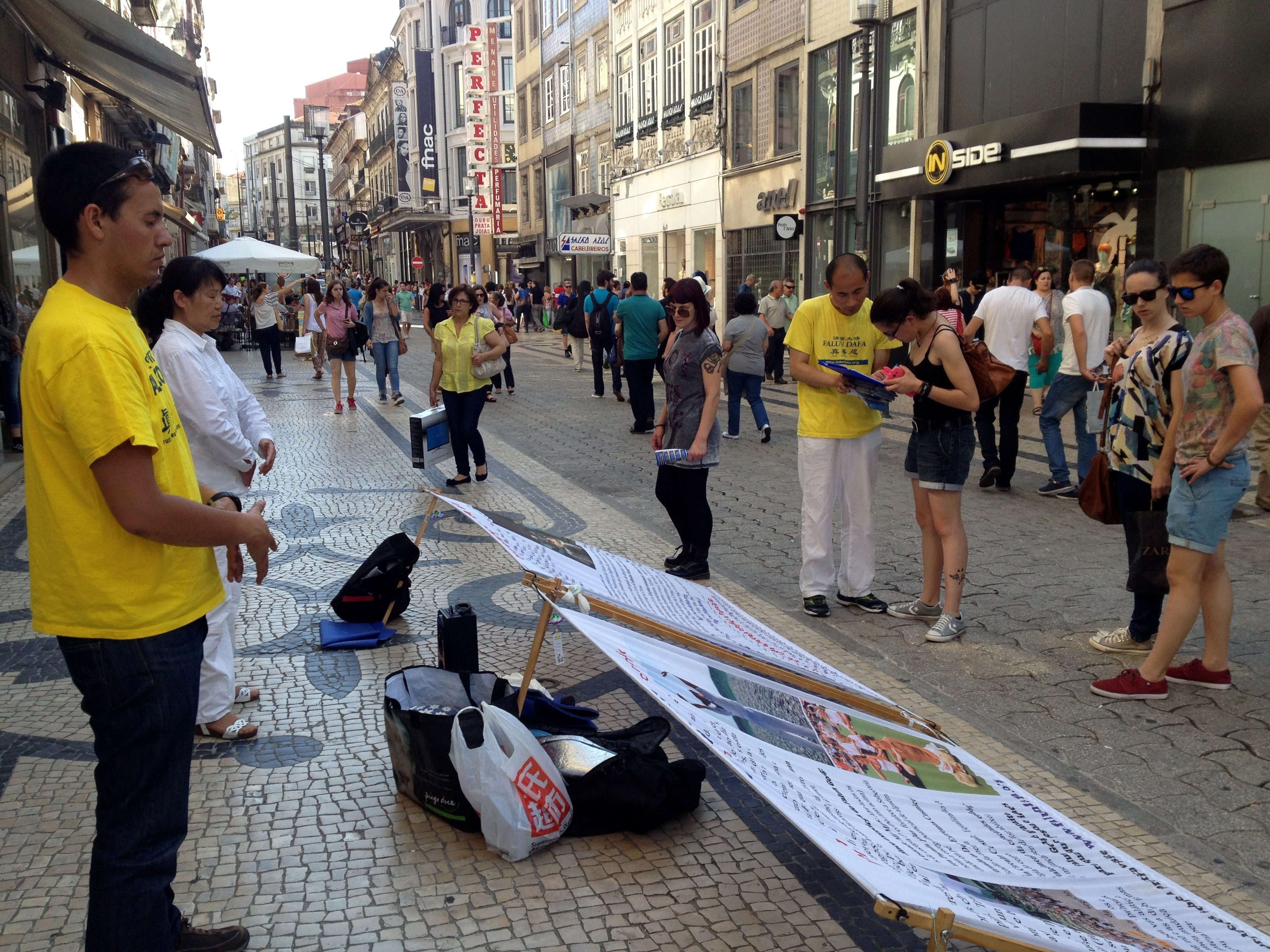 【明慧网二零一五年六月十四日】二零一五年五月至六月期间,葡萄牙法轮功学员利用周末节假日弘扬大法,讲真相,揭露中共强行活摘法轮功学员器官,征签反迫害反活摘。