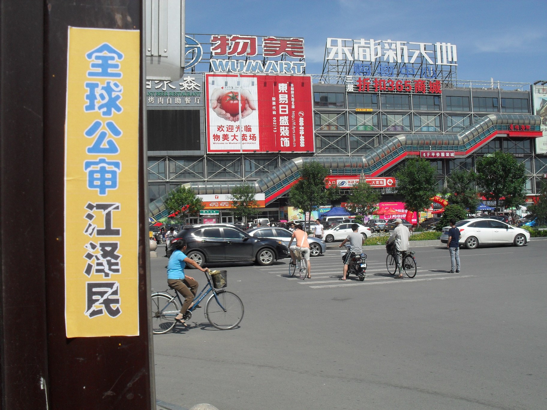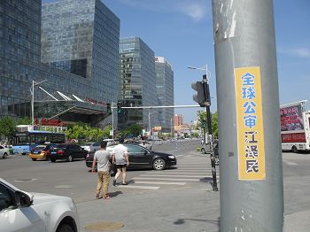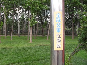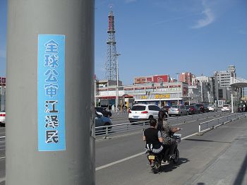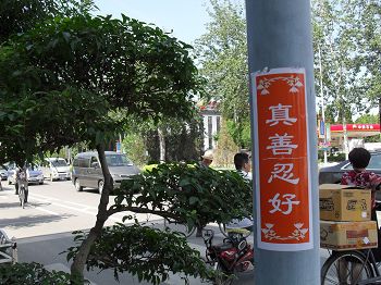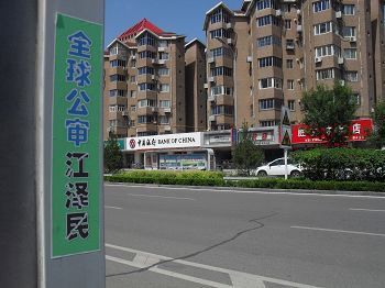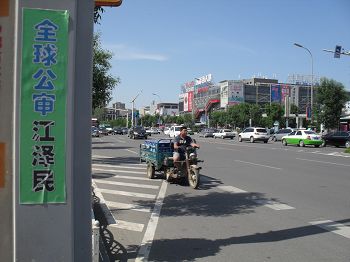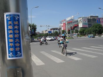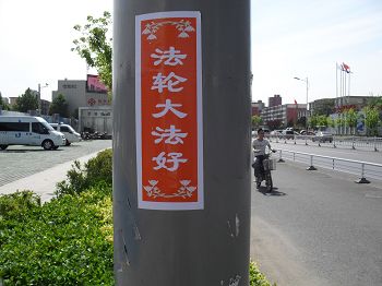 六月盛夏,在河北廊坊大街小巷、公园广场、十字路口都可看到“全球公审江泽民”、“法轮大法好”等真相标语,这是法轮功学员张贴的标语,把真相带给当地的民众。