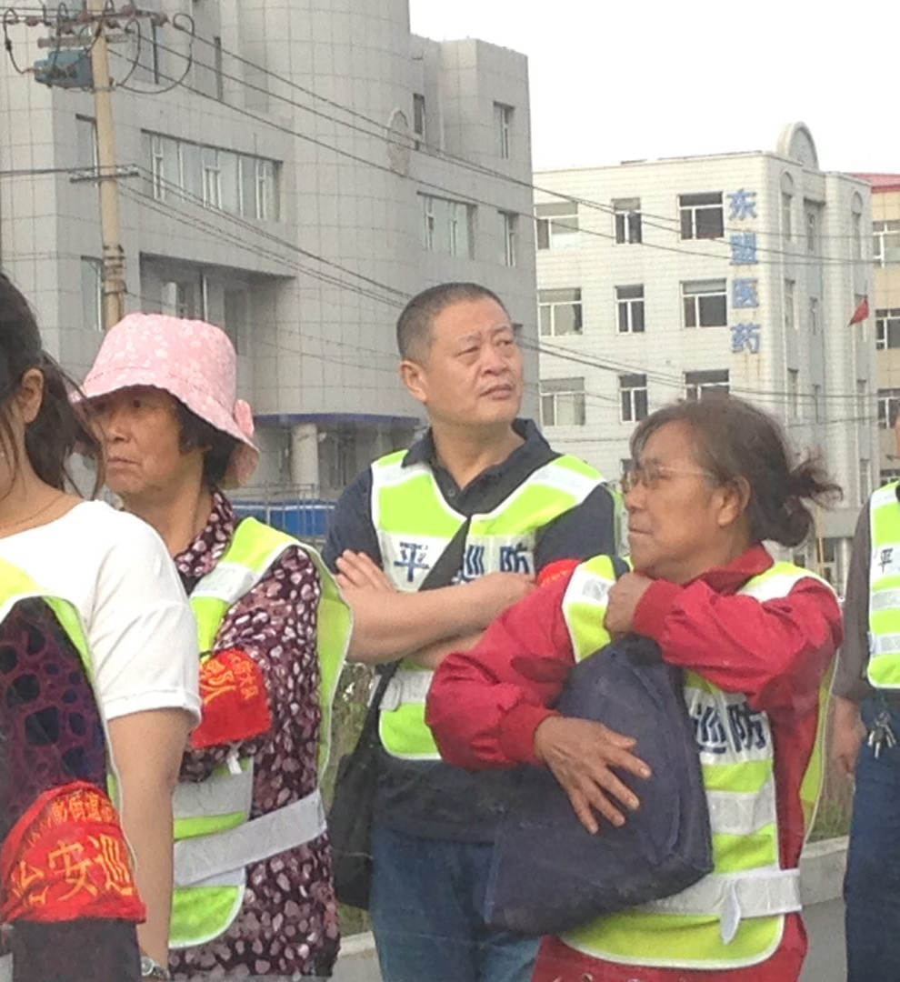 王淑艳和刘香阁两家家属起大早赶到法院,发现五点之前,法院门前道路就已全封闭了,两辆警车横在法院门口,众多像私家车的便衣车占据着路旁,门口除了着警服的警察外,到处都是便衣,他们上身着各色西服,下穿警裤,拿着小铲子,在铲道路两旁贴在电线杆和建筑物上揭露宽城区法院非法开庭的真相传单。