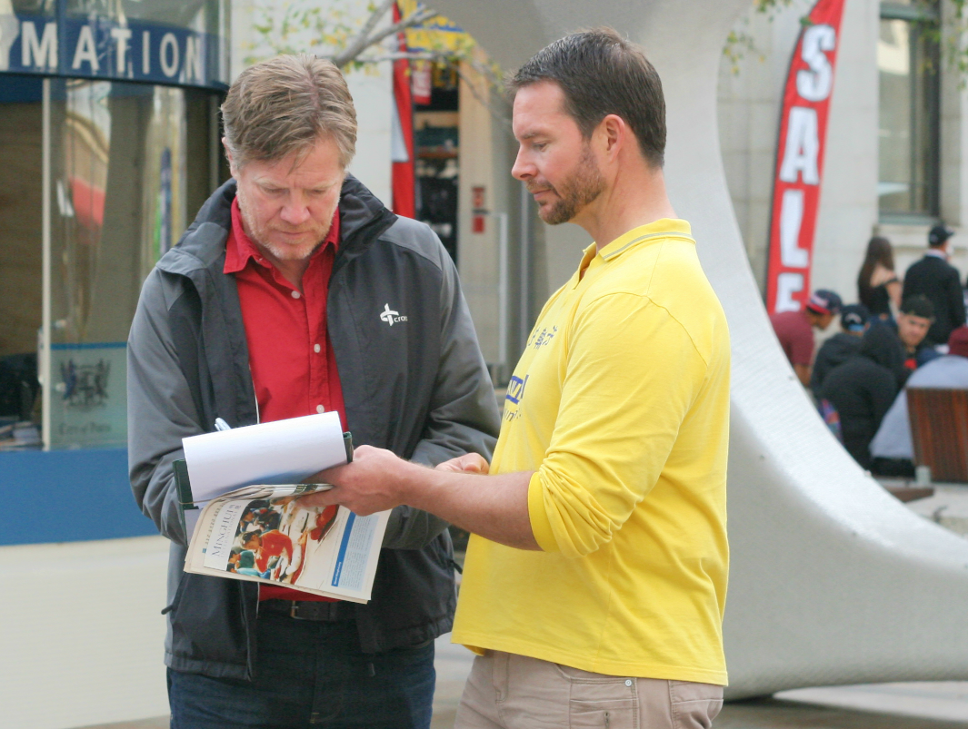![]() 图1-5:六月二十日,珀斯部分法轮功学员在市中心讲真相活动,并征集签名支持反迫害,反对活摘器官 |