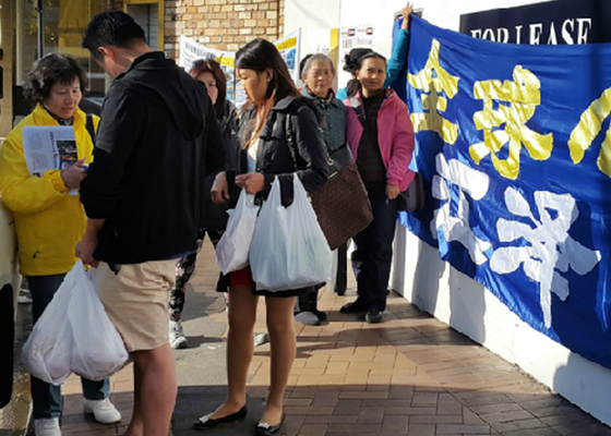 - 悉尼华人:支持法轮功起诉江泽民- 很多走过横幅前的华人都会驻足或回头再看一眼,有的惊呼:啊,法轮功起诉江泽民了!有的说起诉他好,应该起诉他!有的站在横幅前深思不走。