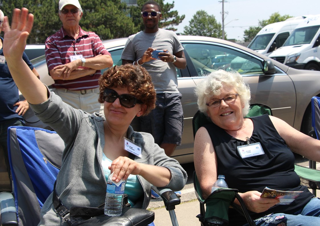 ![]() 游行工作人员看到天国乐团的到来,兴奋地举着双手说:“奥沙瓦(Oshawa)欢迎你们!谢谢你们!” |