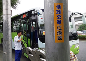 - 北京街头多处可见“全球公审江泽民”标语(图)- 六月下旬,北京街头多处见到“全球公审江泽民”标语。