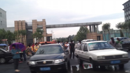 在法院东门北侧、警戒线以北,各镇政法委、综治办人员及车辆。附近有一辆警车冀R1308警,杂牌车有:京MQ2538,京K6291,京5239E,京JEB982,冀R55N39,京PIMW22,冀RSH026,ISS288,冀RD9L67,冀235Q5,冀W7031,冀DC673。