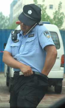 警察、特警开始比较紧张,后来看到周围的法轮功学员都很和平、理性,也就随意了。也有许多人对非法庭审反感、消极懈怠,打电话消遣。