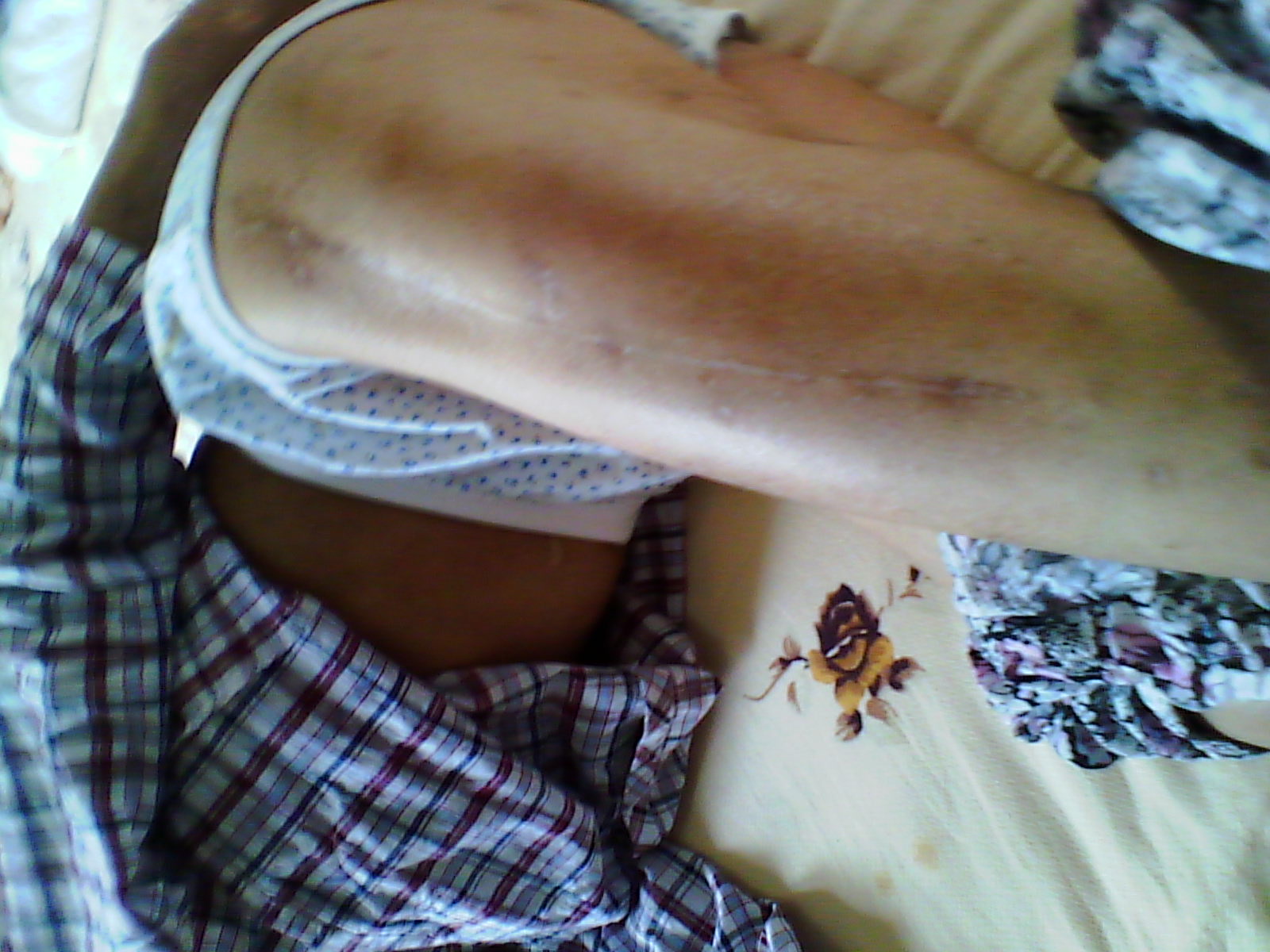 ![]() 苏南大腿骨折手术后留下的刀痕 |