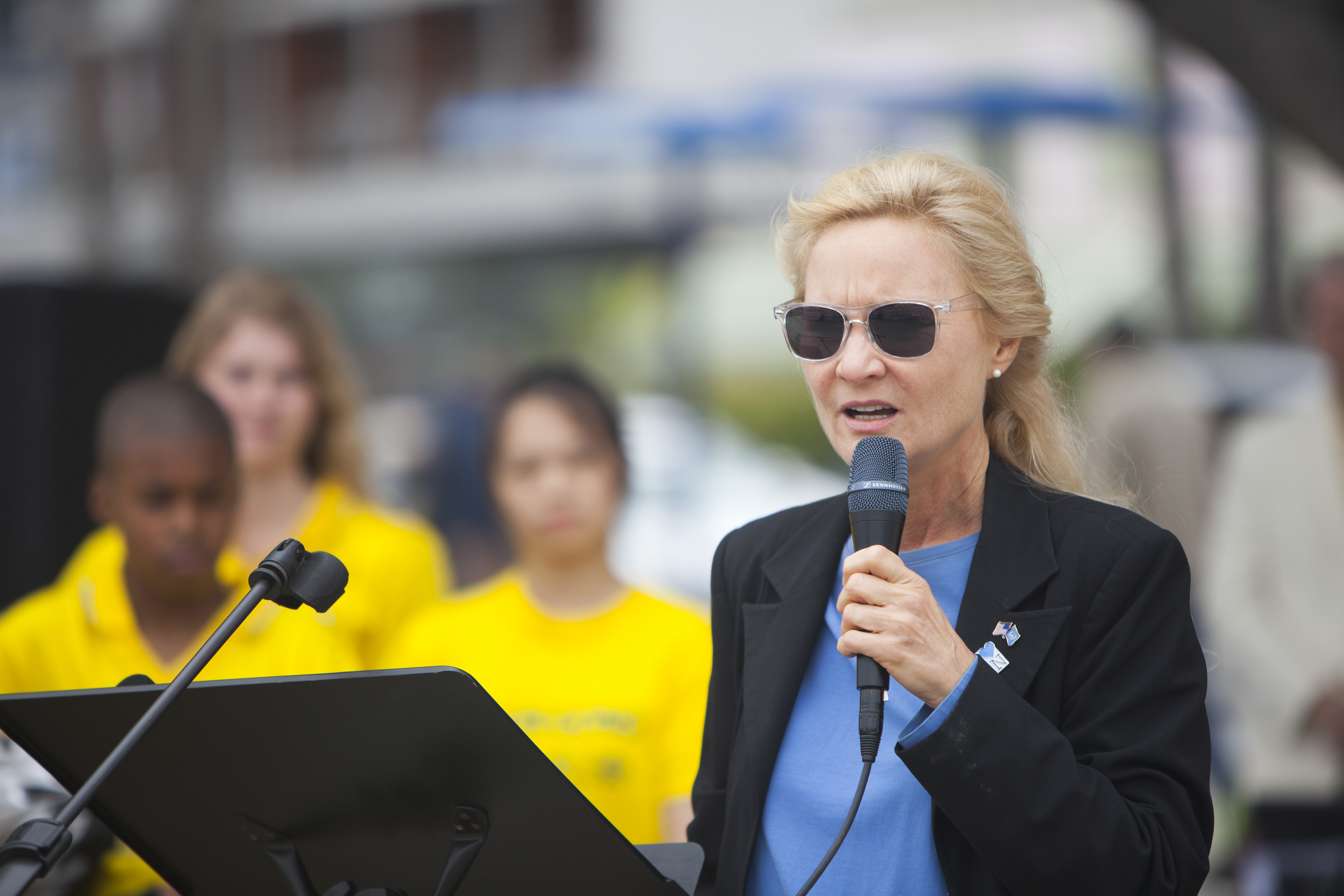 联合国协会洛杉矶分会会长、资深制片人琼‧柯林斯 (Joan Collins) 参加了三十一日的启程仪式。她说自己五岁时家里出事,父亲被带走,可她无法想象仅仅因为信仰原因而失去父母的滋味。柯林斯说:“你们让全世界都看到:谁也不能控制人的思想。”联合国协会(United Nations Associations)是一个非政府组织,旨在加强联合国成员国人民之间的联系,加强公众对联合国总体目标的了解,以和平、安全、裁军、人权和人道为长远目标。目前该组织在世界各地有120多个分部。