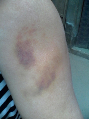 5月15日晚上八点左右,酒后的李峰对她拳打脚踢、拽头发,致使她全身疼痛多处淤伤,然后四人中两人逮着她的手强行按下手印。
