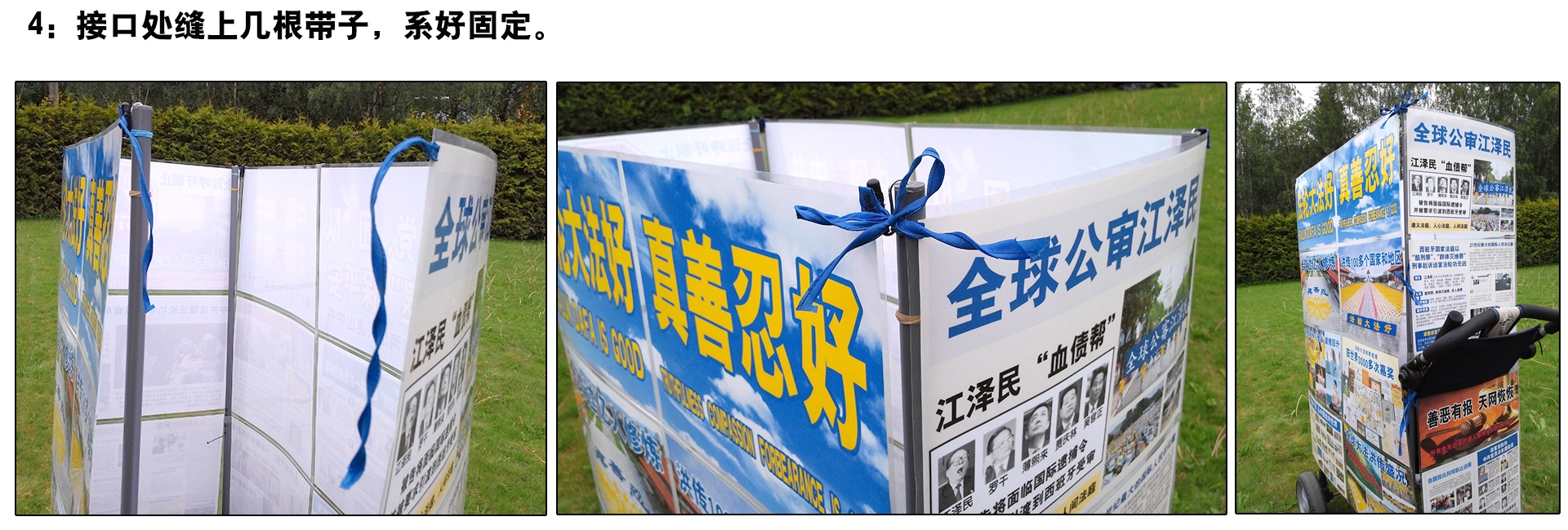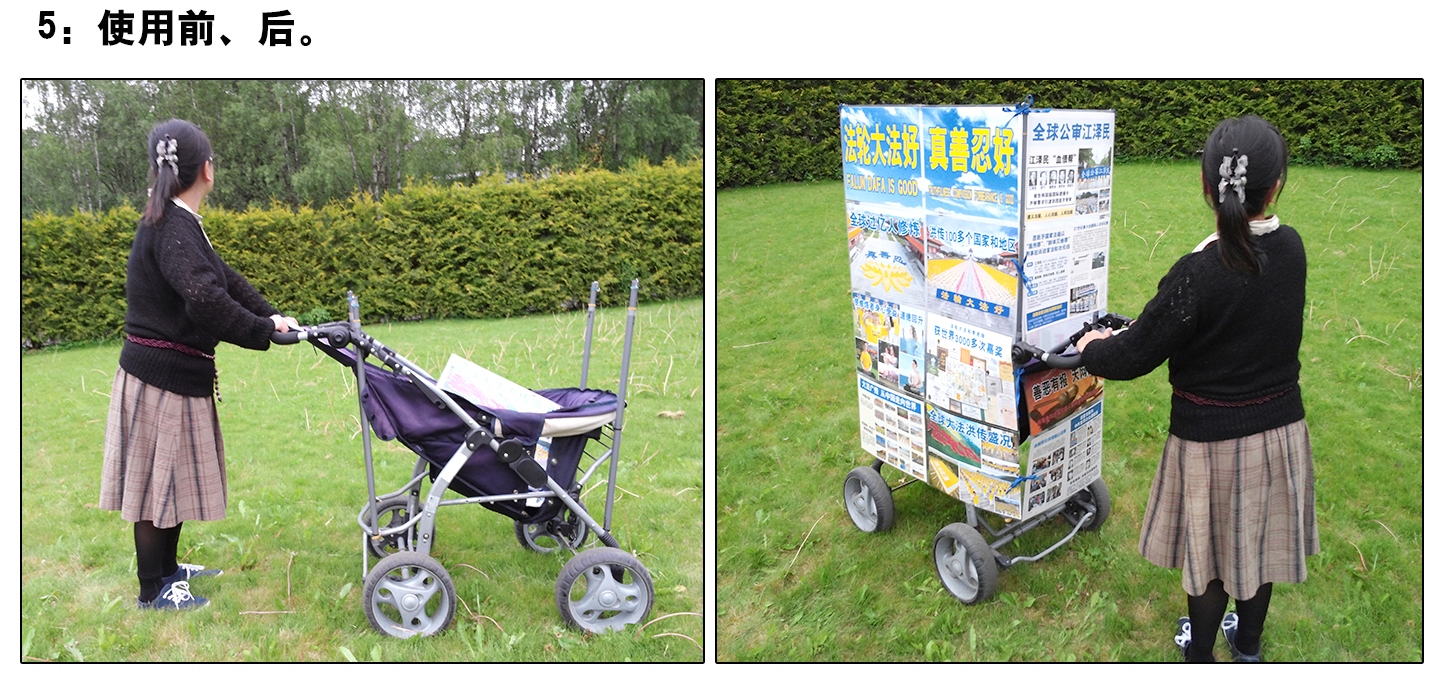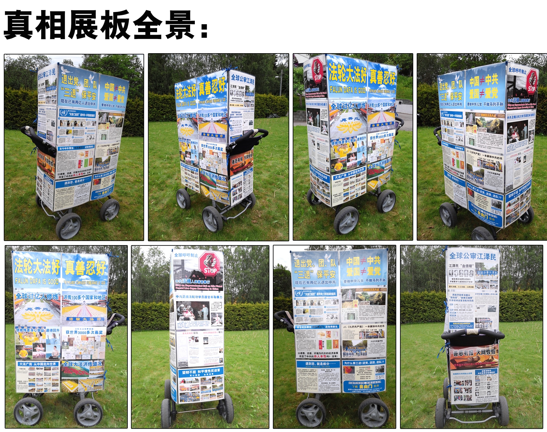 【明慧网二零一五年六月三十日】春季来临,来挪威旅游的中国游客越来越多。根据挪威当地大法弟子人手少且无法在景点悬挂真相资料的特点,大家因地制宜,利用婴儿车设计制作了一款便携、可升降、可移动的真相展板,特与大家分享。