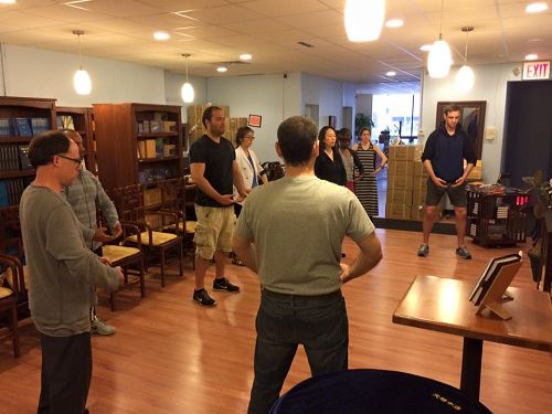 这次九天班是在二零一五年纽约法轮大法修炼心得交流会结束不久后开班的。一年一度的纽约法会总有数千人参加,今年更是8400人到会,其中许多人顺路来光顾天梯书店这个全球唯一的法轮大法书籍专营店,使得平时店面还算宽敞的天梯书店显得格外拥挤。一些来自世界不同国家的法轮功学员不约而同的告诉书店员工:早就想来,但一直没机会,现在终于来成了,很高兴。喝杯香浓咖啡,坐下来感受充满大法能量的环境,看着满堂的大法书籍,曼哈顿闹市的繁杂被一种特有的气氛溶化了。