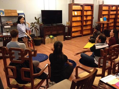 天梯书店自二零一三年十月进驻纽约以来,每两月一次,举办英文法轮大法九天学习班,免费为大纽约地区的公众播放李洪志大师的讲课录像,和教授法轮大法的五套功法。